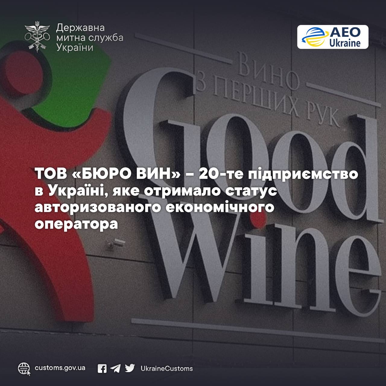 Тому наші вітання 20-му підприємству зі статусом АЕО - ТОВ “Бюро Вин” (засновник мережі Goodwine)!
