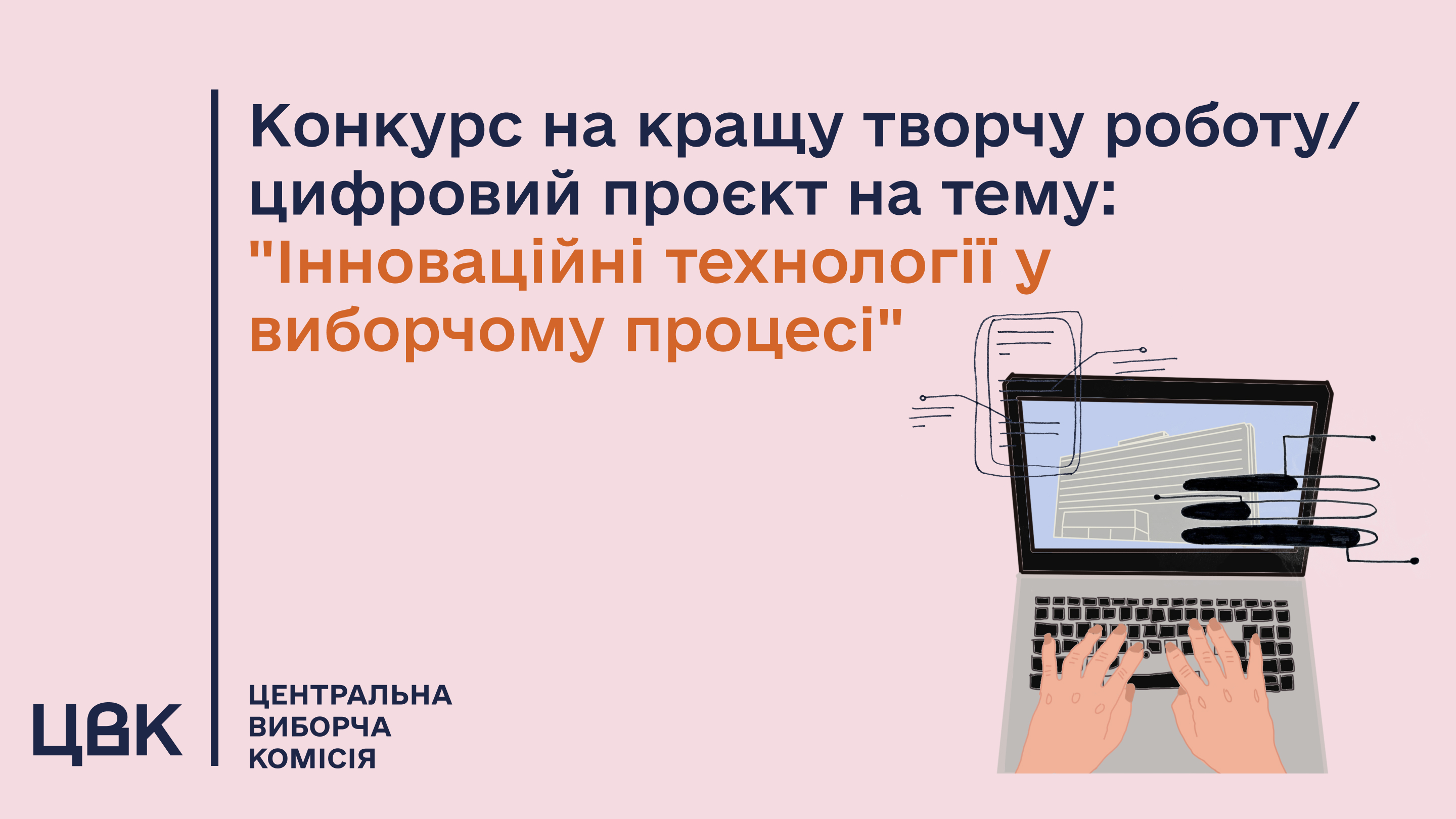 Центральна виборча комісія організовує конкурс на кращу творчу роботу/ цифровий проєкт на тему: “Інноваційні технології у виборчому процесі”.
