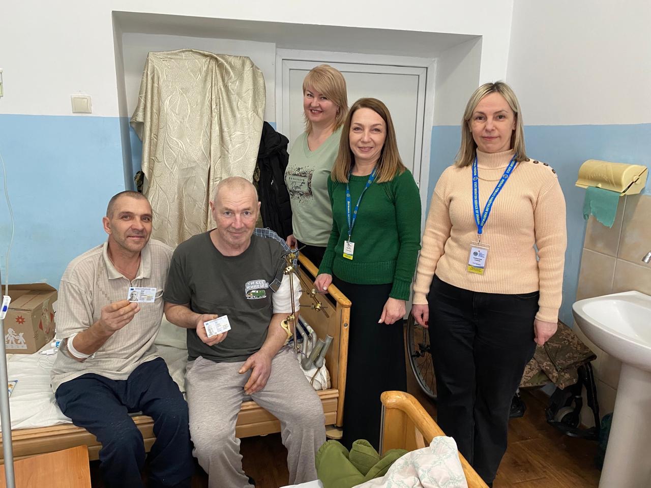 Працівники Корольовського відділу у м. Житомирі Управління ДМС у Житомирській області у співпраці з фахівцями Простору турботи про ветеранів, створеного за ініціативи Міністерства у справах ветеранів України, організували оформлення та вручення паспортів громадянина України у формі ID-карток захисникам, які перебувають на лікуванні та проходять реабілітацію в одному з медичних закладів міста.