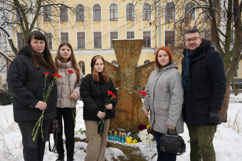 Після виступів квіти та лампадки до меморіалу поклали Голова УІНП Олександр Алфьоров, Перша заступниця Голови Юлія Гнатюк, заступниця Голови Анна Сдобнова та інші співробітники Інституту, студенти, представники громадськості.