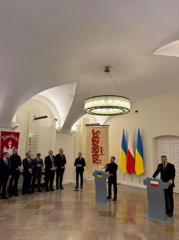 «Було і героїчне, і, на жаль, трагічне на нашому шляху. Ми поважаємо польський погляд на шлях наших народів, ми шануємо вашу пам’ять про те, що було. Розраховуємо на вашу повагу до нашої української пам’яті. Готові працювати разом так, щоб зв’язки між Україною та Польщею давали силу й розвиток нашим народам», – наголосив Володимир Зеленський.