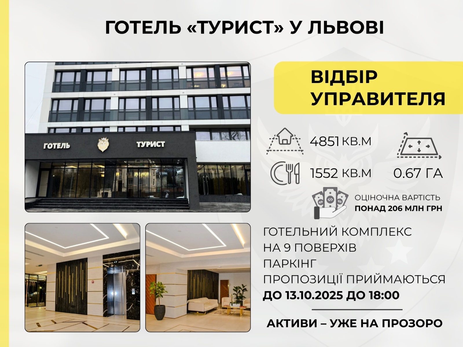 Агентство з розшуку та менеджменту активів (АРМА) проводить на платформі Prozorro відкритий конкурс із відбору управителя для готелю «Турист» у Львові, арештованого та переданого в АРМА за ухвалою Печерського районного суду Києва.