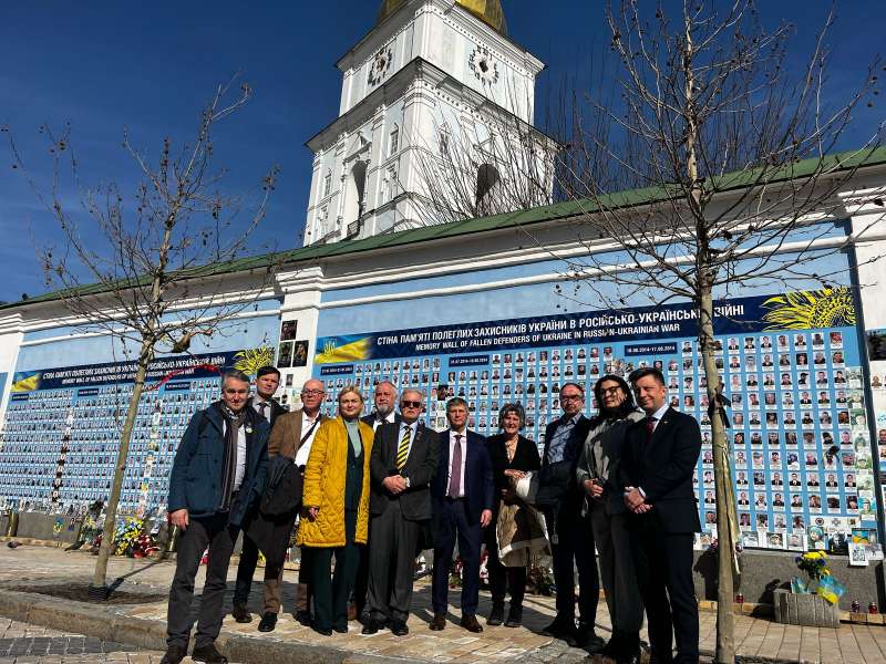 У Києві відбулося 16-те засідання Парламентського Комітету Асоціації Україна-ЄС. Європарламентарі приїхали в Україну вперше після повномасштабного вторгнення. Багато з них - взагалі вперше в Україні. Свій візит делегація Європарламенту почала із шани Захисникам і Захисницям, які віддали життя, боронячи Україну. Їхню пам’ять євродепутати вшанували біля стіни пам’яті на Михайлівській площі.