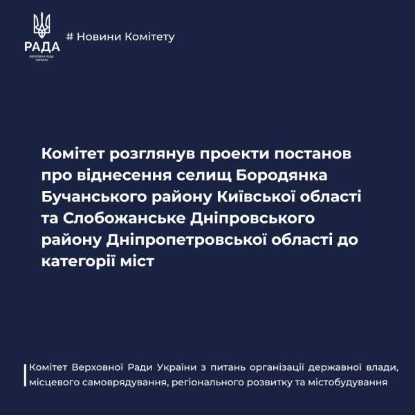 Комітет з питань організації державної влади розглянув проекти постанов про віднесення двох селищ до категорії міст