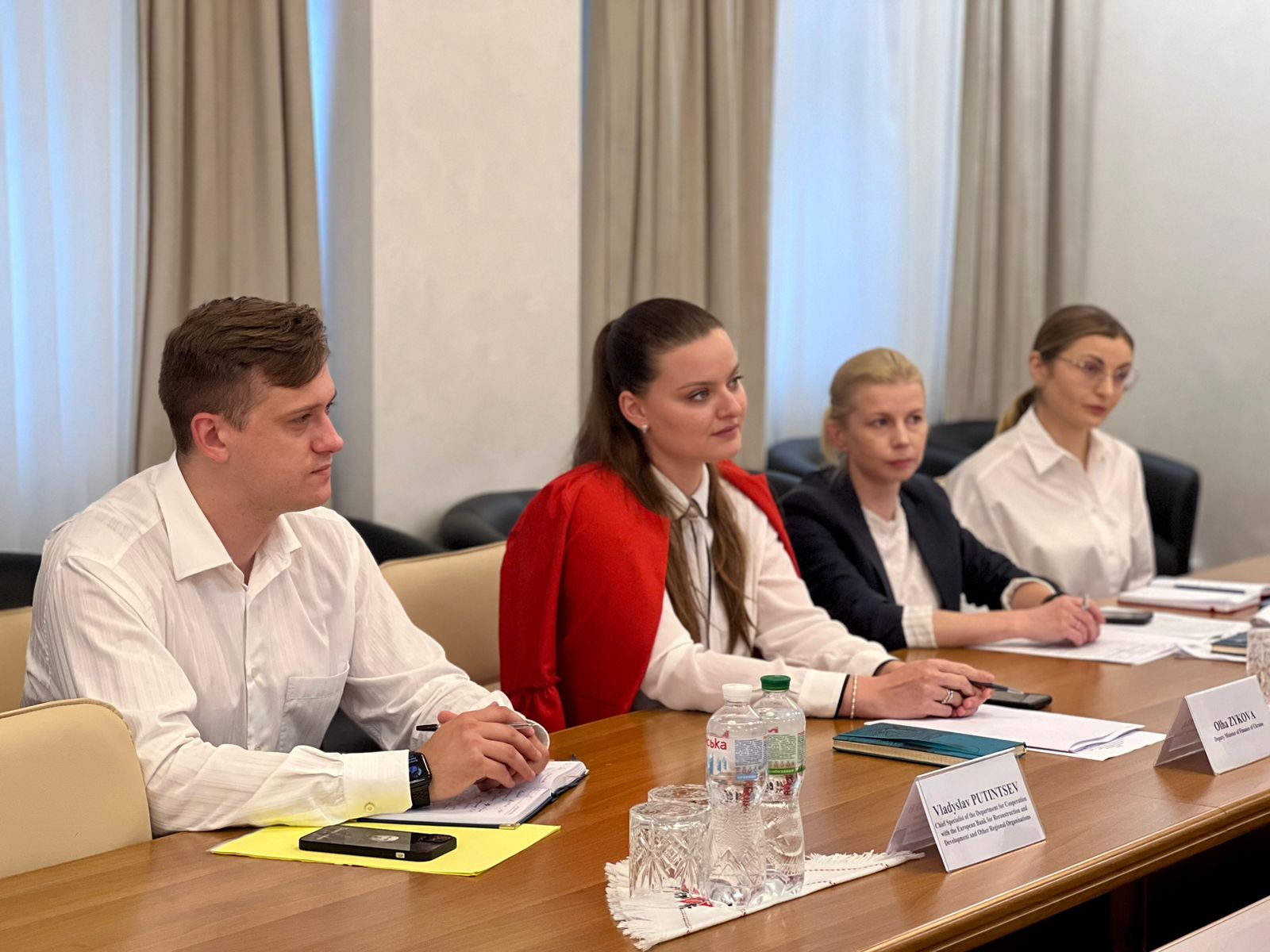 Заступниця Міністра фінансів України Ольга Зикова, заступник Міністра фінансів з питань європейської інтеграції Юрій Драганчук та Директор Представництва Кредитної установи для відбудови (KfW) в Україні Лоренц Гесснер обговорили стан впровадження спільних проєктів і плани щодо подальшої співпраці.