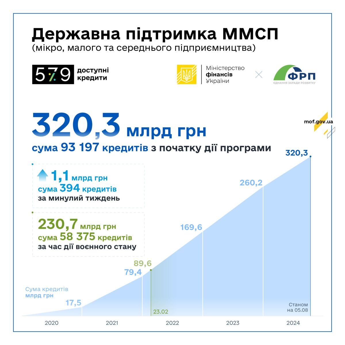 За Державною програмою «Доступні кредити 5-7-9%» ФРП уклав угоди про співробітництво з 46 банками. Держава продовжує здійснювати всі необхідні компенсаційні виплати на користь бізнесу за укладеними кредитними договорами у межах Програми.