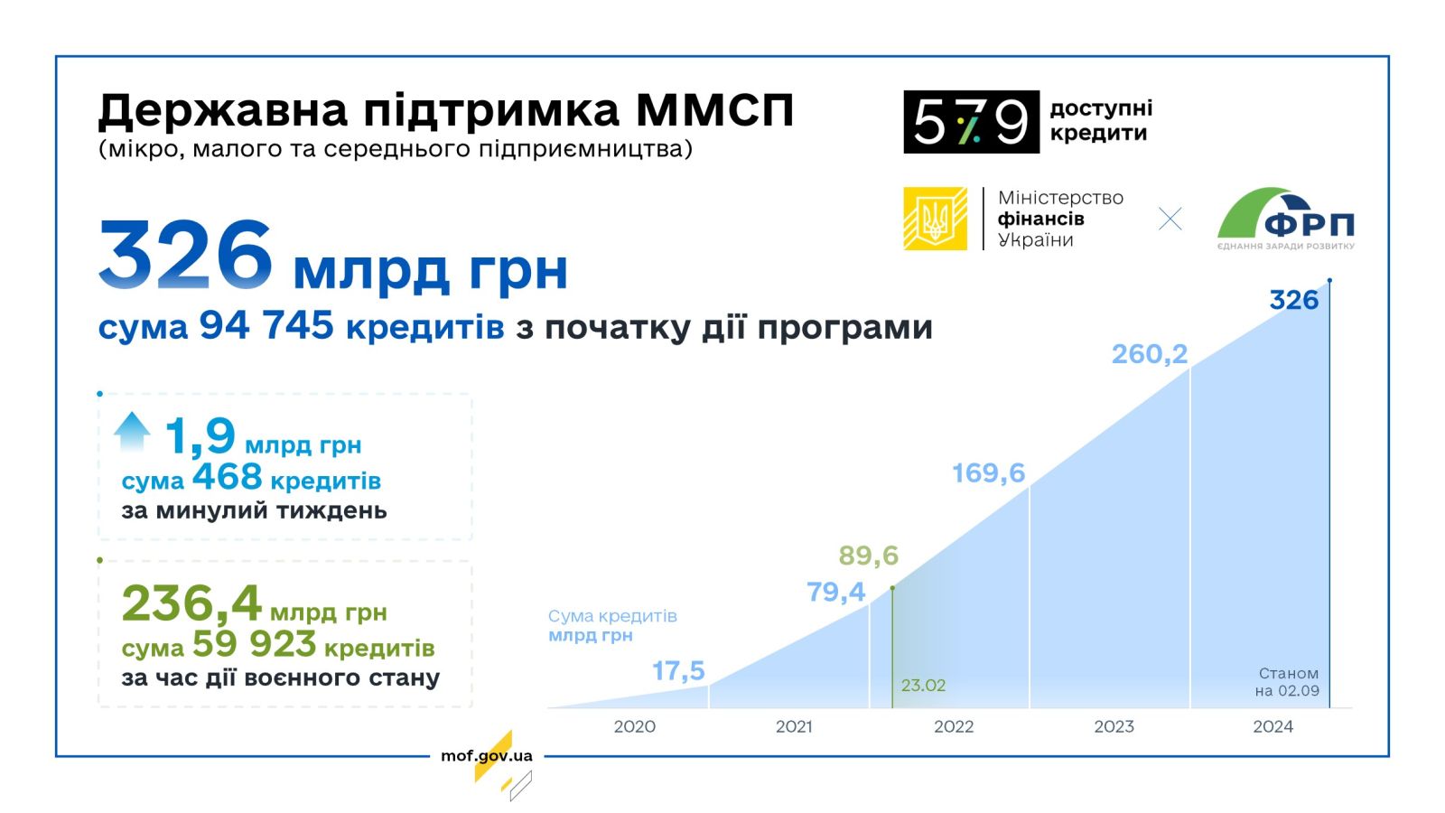 Мінфін: За минулий тиждень підприємці отримали 468 кредитів на 1,9 млрд грн за програмою «Доступні кредити 5-7-9%»