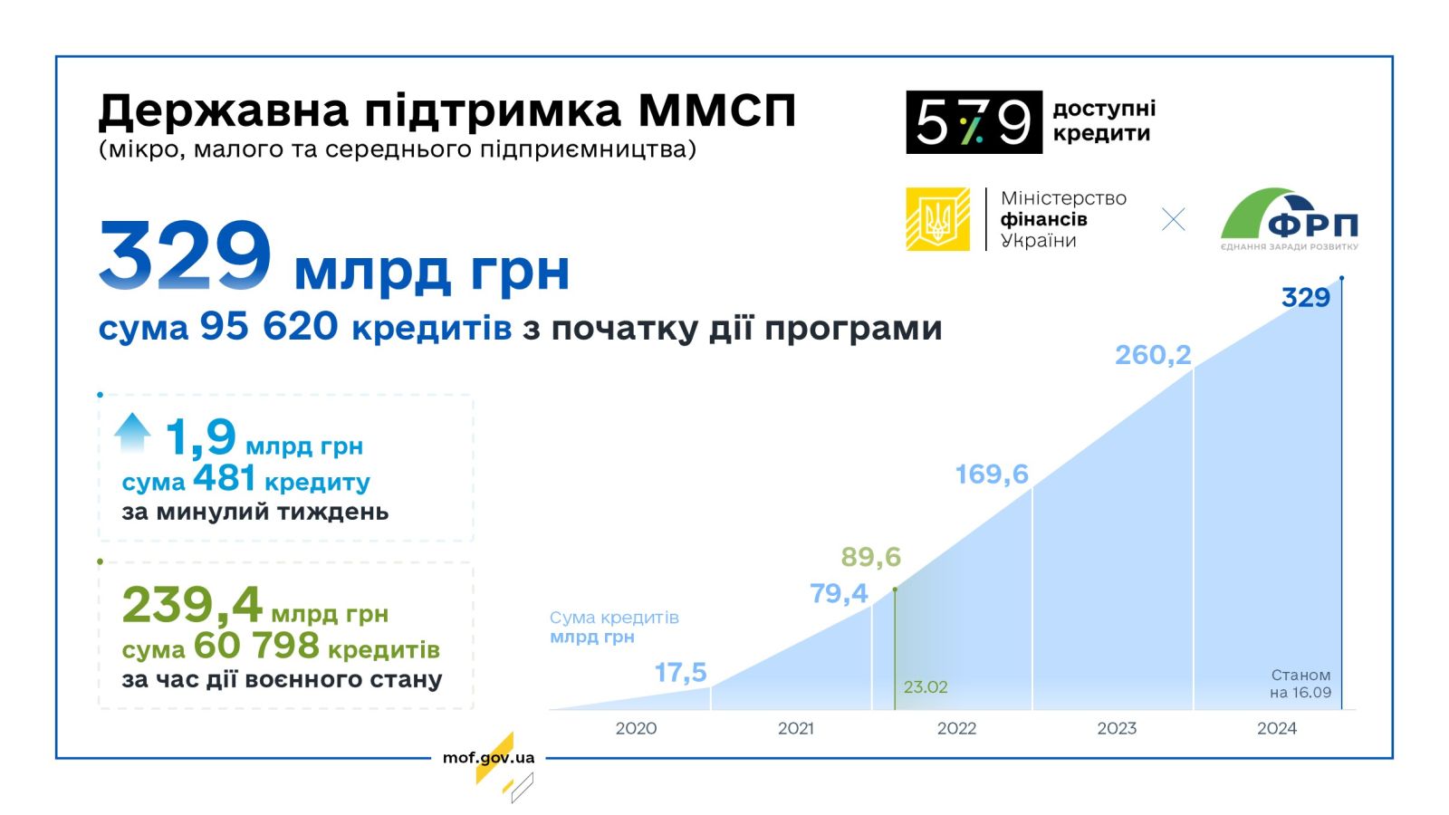 За Державною програмою «Доступні кредити 5-7-9%» ФРП уклав угоди про співробітництво з 46 банками. Держава продовжує здійснювати всі необхідні компенсаційні виплати на користь бізнесу за укладеними кредитними договорами у межах Програми.