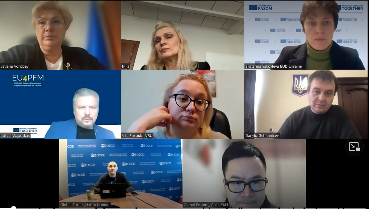 Міністерство фінансів України, Комітет Верховної Ради України з питань фінансів, податкової та митної політики, Представництво Європейського Союзу в Україні, Глобальний форум ОЕСР з прозорості та обміну інформацією для податкових цілей та Програма ЄС з підтримки України з управління державними фінансами (EU4PFM) продовжують співпрацю з метою запровадження в Україні автоматичного обміну інформацією про фінансові рахунки відповідно до міжнародного Загального стандарту звітності CRS (Common Reporting Standard) (далі – Стандарт CRS ).