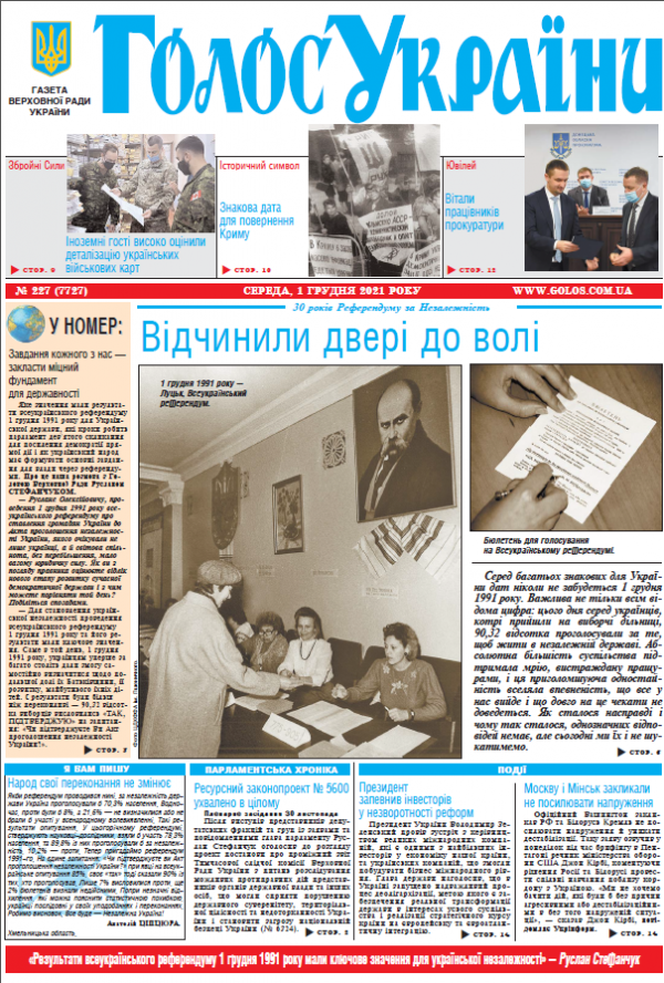 Повний випуск «Голосу України» від 01.12.2021 на сайті http://www.golos.com.ua
