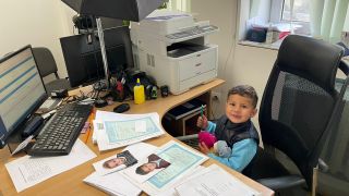Втім, і головні герої дня були поруч. Поки мама вирішувала офіційні питання, один із хлопців скористався нагодою по-своєму: невгамовний і допитливий, він зручно вмостився в крісло працівника ДМС і, здається, вже почувався справжнім господарем кабінету. Малий непосидько з серйозним виглядом оглядав робочий стіл і зосереджено «вивчав» документи.