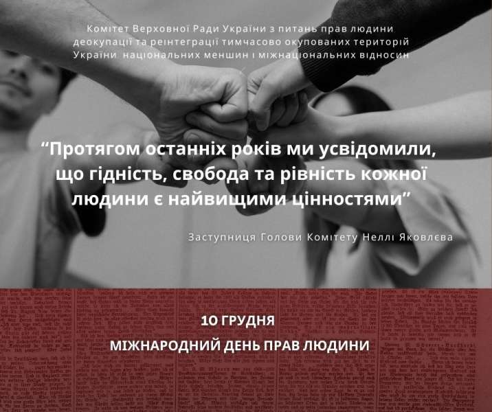 Протягом останніх років ми усвідомили, що гідність, свобода та рівність кожної людини є найвищими цінностями, - заступниця голови Комітету з питань прав людини Неллі Яковлєва