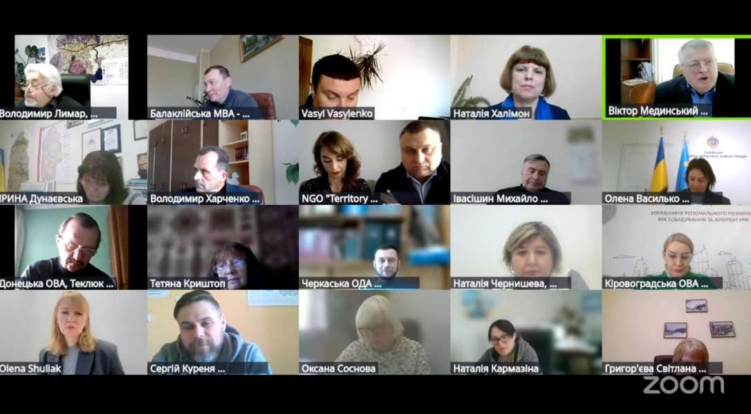 На засіданні було представлено досвід підготовки програм комплексного відновлення Житомирської та Чернігівської областей, а також досвід розроблення програм комплексного відновлення територій Куликівської селищної територіальної громади Чернігівського району Чернігівської області, Макарівської селищної територіальної громади Бучанського району Київської області, Іванківської селищної територіальної громади Вишгородського району Київської області, Балаклійської міської територіальної громади Ізюмського району Харківської області, Малинівської селищної територіальної громади Чугуївського району Харківської області, обговорено проблемні питання реалізації завдань з планування відновлення відповідних територій, фінансування робіт та отримання статистичних даних.