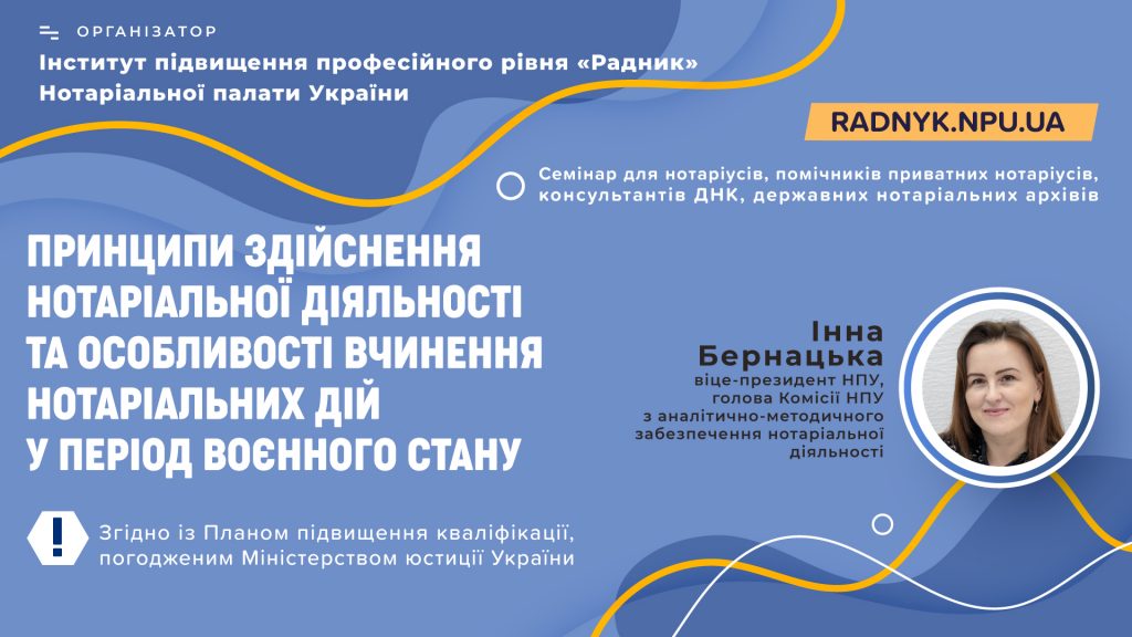 Інститут Радник запрошує на семінар “Принципи здійснення нотаріальної діяльності та особливості вчинення нотаріальних дій у період воєнного стану”