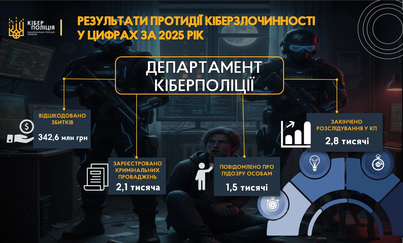 Підсумовуючи результати 2025 року можна констатувати, що кіберполіція продемонструвала здатність адаптуватися до нових викликів та забезпечувати належний рівень реагування на кіберзагрози. Разом із тим, динамічний розвиток технологій і зростання професіоналізації злочинних угруповань зумовлюють необхідність подальшого вдосконалення діяльності у 2026 році.