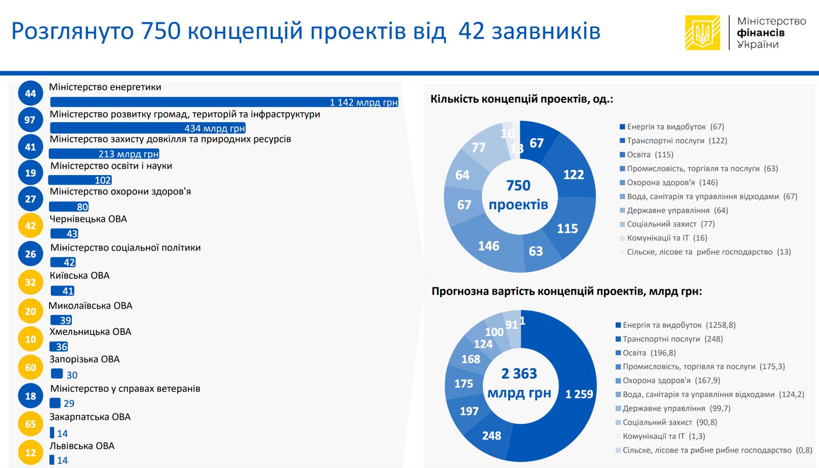Єдиний проєктний портфель здійснення публічних інвестицій складається з 750 проєктів вартістю 2,36 трлн грн.