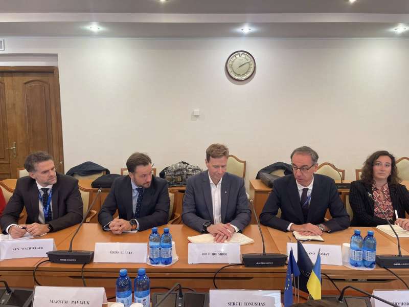 Голова Комітету Сергій Іонушас, заступники Голови Комітету Максим Павлюк та Григорій Мамка, голова підкомітету Владлен Неклюдов 14 жовтня зустрілись з високопосадовцем ЄС, який курує 11 цивільних місій в рамках Спільної політики безпеки та оборони в Європі - керівним директором і командувачем цивільними операціями ЄС у Європейській службі зовнішніх справ Стефаном Томатом, Головою Консультативної місії Європейського Союзу в Україні (EUAM Ukraine) Рольфом Холмбо.