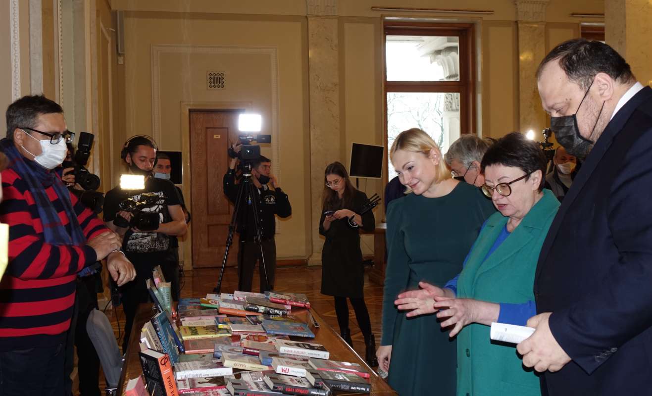 Директорка Українського інституту книги Олександра Коваль, який представив виставку книги у Верховній Раді, подякувала народним депутатам і Голові Верховної Ради за можливість представити книги у Парламенті.
