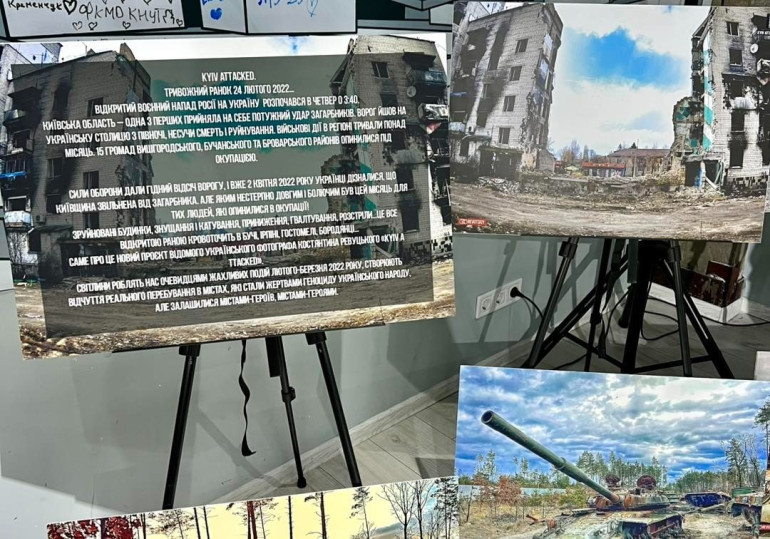 Учасникам заходу було представлено тематичну фотовиставку «Атака на Київ», головного спеціаліста Департаменту інформаційної діяльності та комунікацій з громадськістю Вінницької ОВА Костянтина Ревуцького. Роздруковані на полотнах фото передають ключові епізоди перших тижнів повномасштабного вторгнення та оборони Київщини.