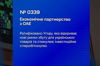 Верховна Рада 26 лютого прийняла Закон України “Про ратифікацію Угоди про Всеосяжне економічне партнерство між Урядом України та Урядом Об'єднаних Арабських Еміратів” (реєстр. №0339).