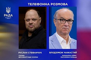 Голова Верховної Ради України Руслан Стефанчук провів першу телефонну розмову з Маршалком Сейму Республіки Польща Влодзімєжем Чажастим на тлі чергової масованої атаки росії проти України.