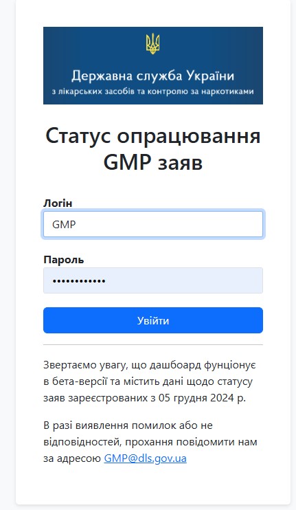 Водночас повідомляємо, що можливість доступу до дашборду підтвердження відповідності GMP. Посилання на нього здійснюється з головної сторінки веб-сайту Держлікслужби.
