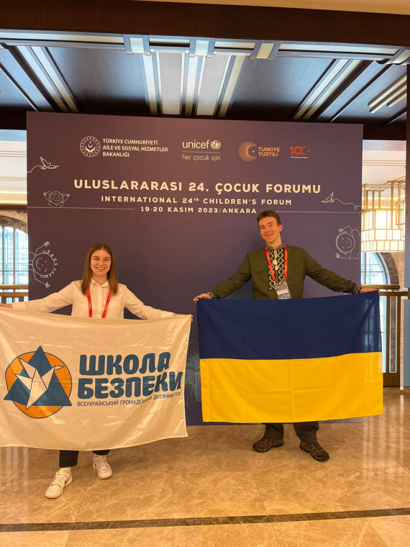 19-20 листопада в міста Анкара (Туреччина), відбувся 24-й Міжнародний дитячий форум, присвячений Дню прав дитини. Форум проходив за сприяння Міністерства сім'ї та соціальних послуг Турецької Республіки разом з ЮНІСЕФ. Форум зібрав дітей із 24 країн світу, а представниками України на ньому стали лідери Всеукраїнського громадського дитячого руху «Школа безпеки» Тарас Кабачок та Анастасія Зубкова. Про це інформує Комітет Верховної Ради України з питань молоді і спорту.