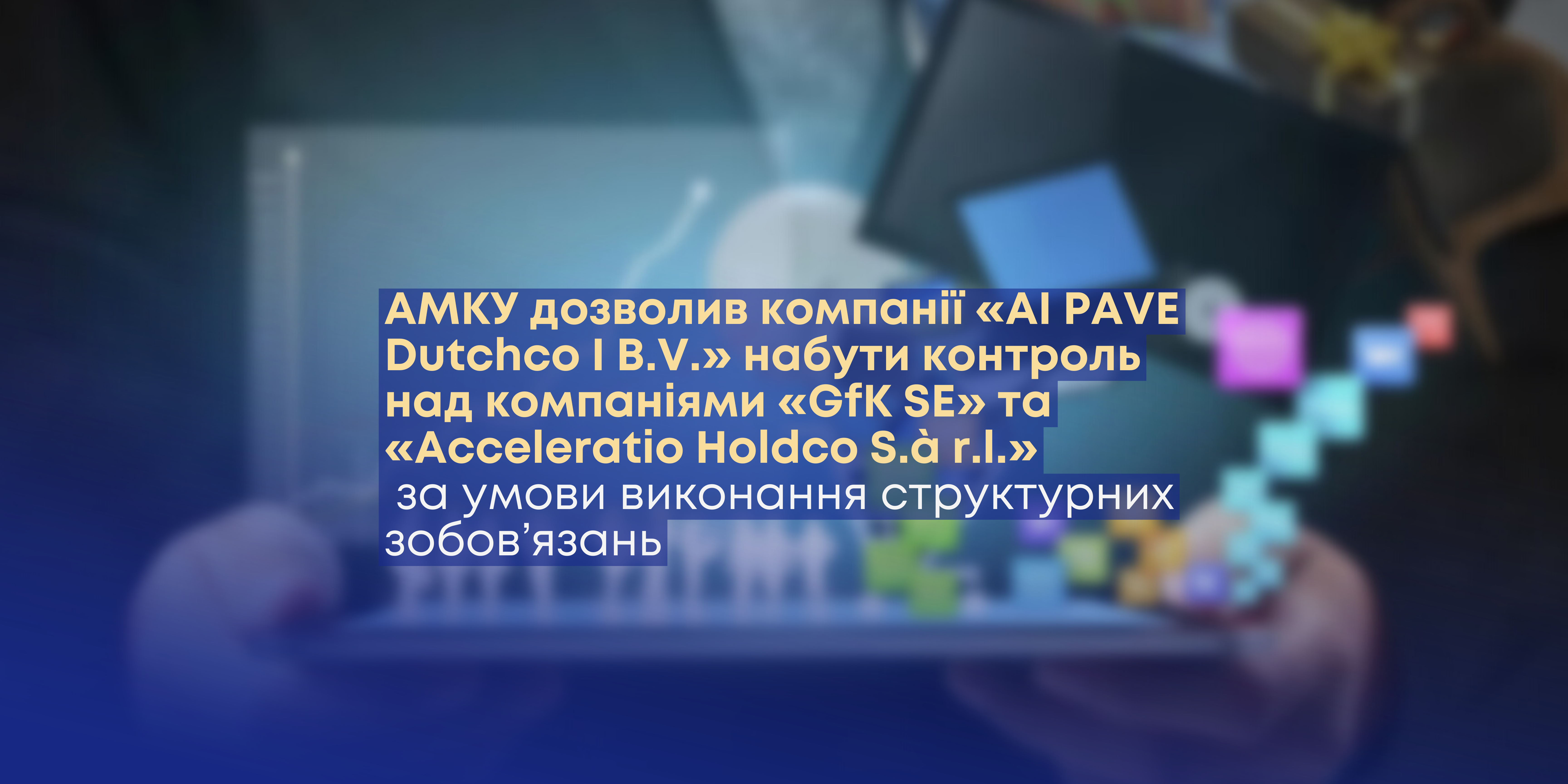 Антимонопольний комітет України завершив розгляд справ щодо надання дозволів компанії «AI PAVE Dutchco I B.V.» (Група Advent) на набуття контролю над компаніями «GfK SE» та «Acceleratio...