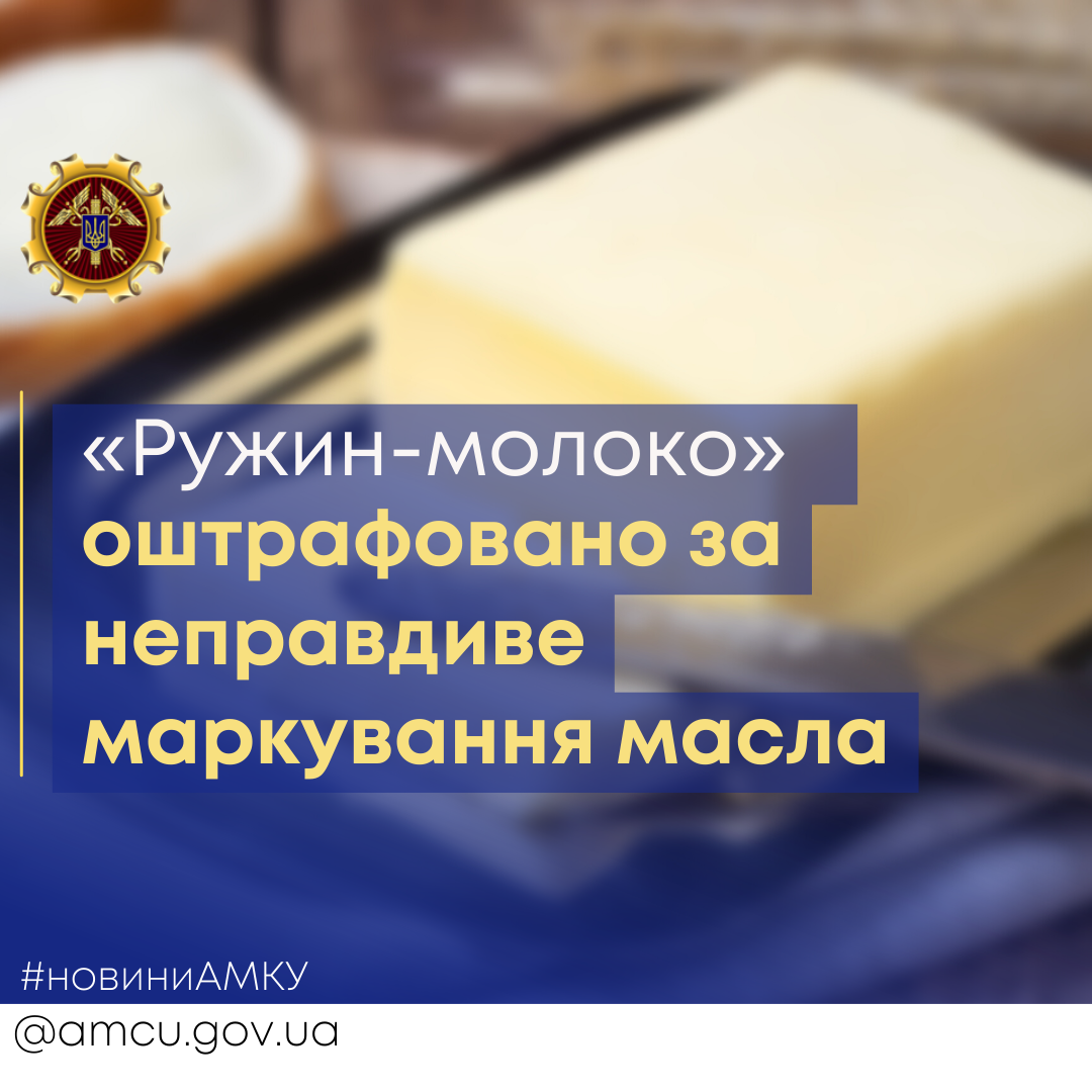 Антимонопольний комітет України оштрафував дочірнє підприємство «Ружин-молоко» за неправдиву інформацію, яку підприємство вказувало на упаковках свого продукту – «масла солодковершкового...