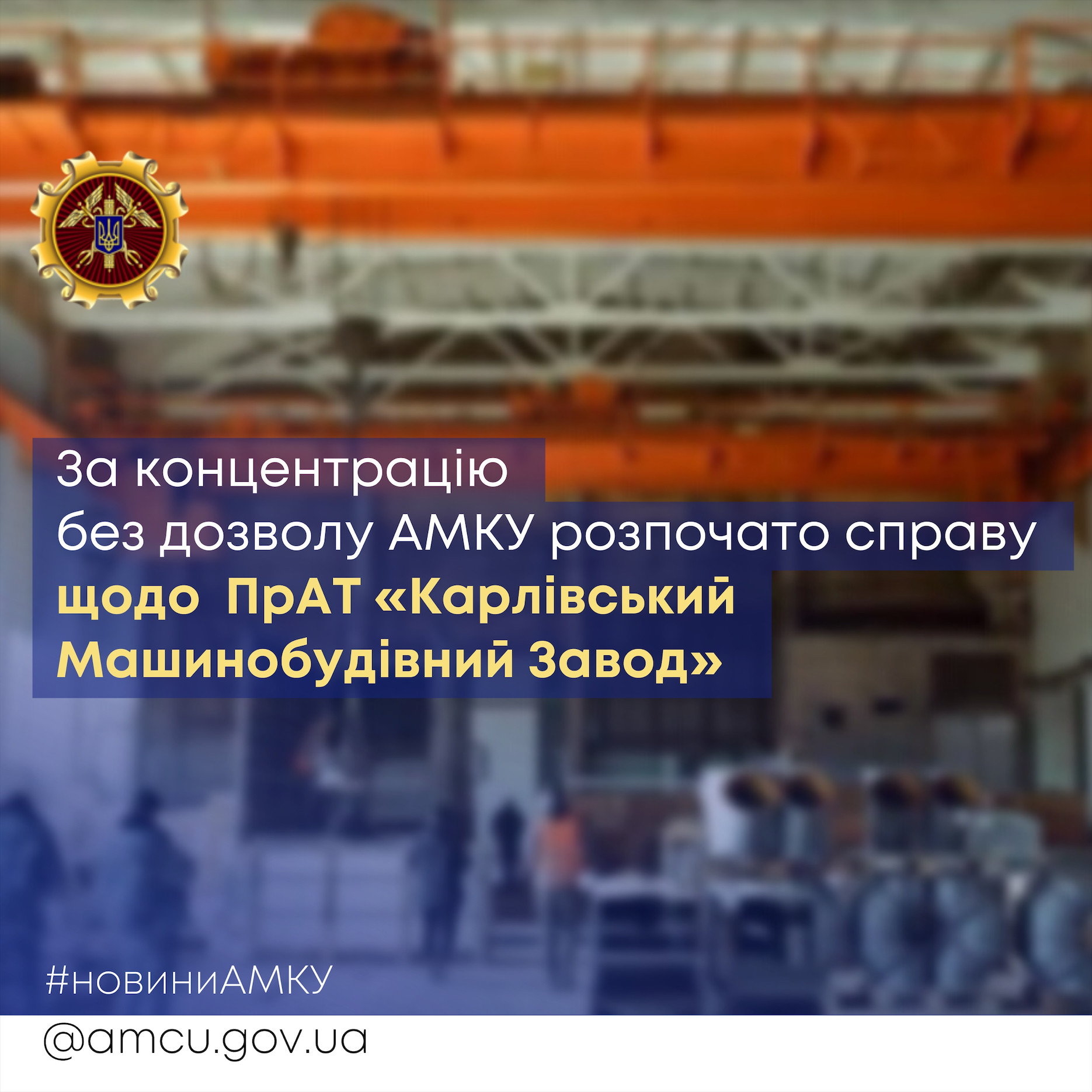 Антимонопольний комітет України розпочав розгляд справи за ознаками вчинення приватним акціонерним товариством «Карлівський Машинобудівний Завод» порушення законодавства про захист еконо...