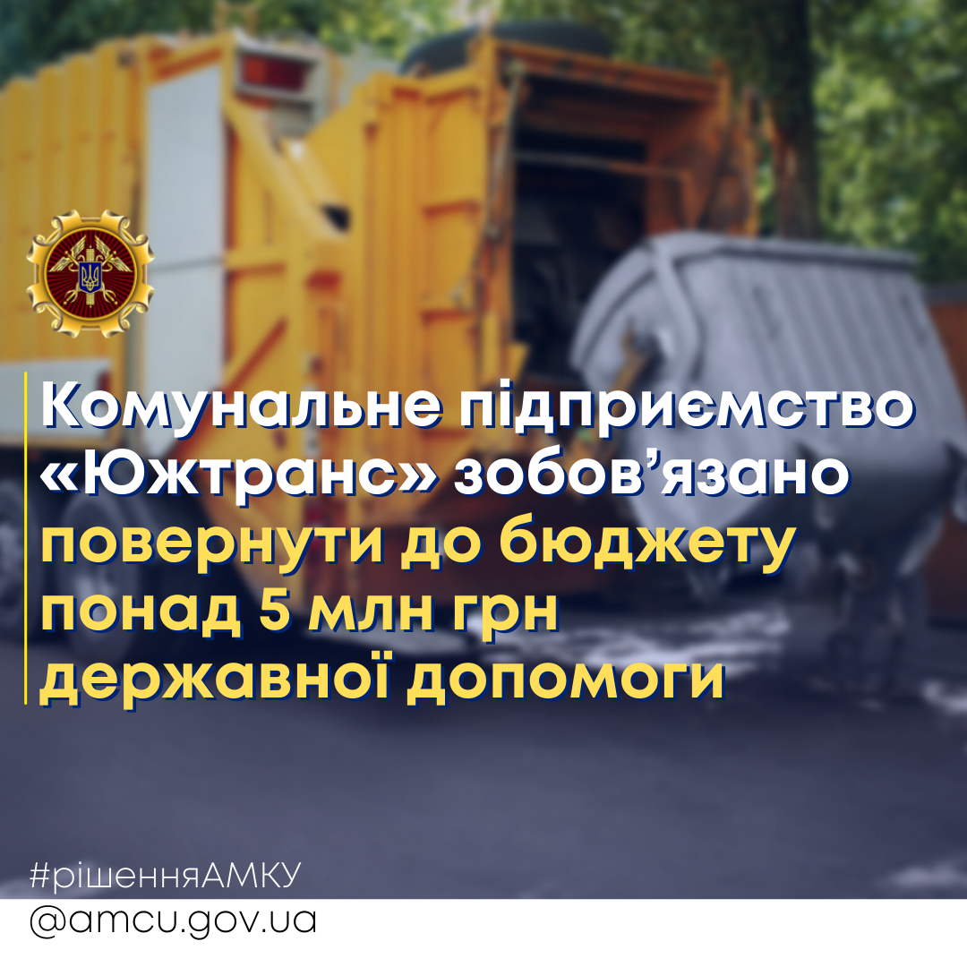 Комітет зобов’язав Управління житлово-комунального господарства Южненської міської ради (Одеська область) припинити надання недопустимої державної допомоги та повернути незаконну державн...