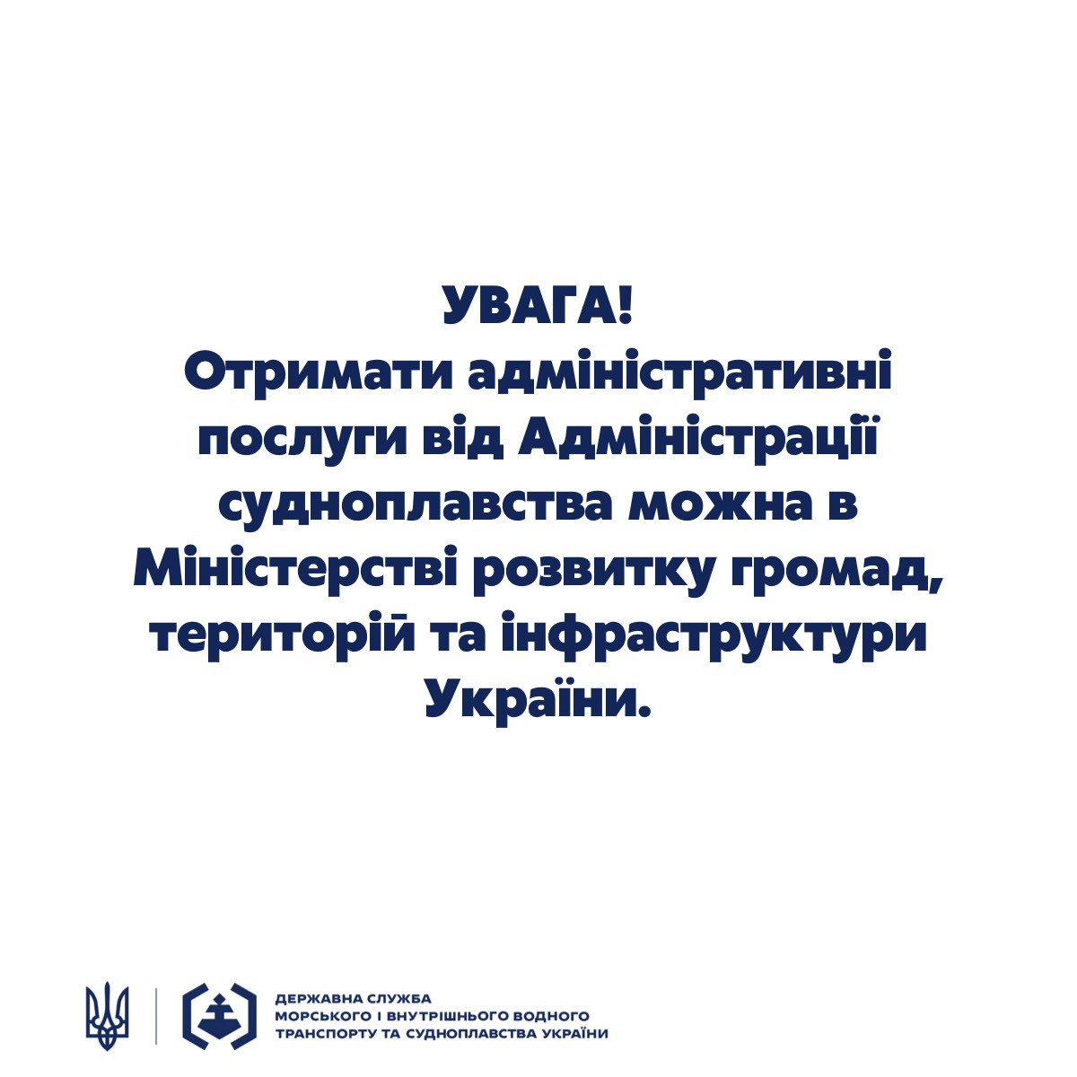 З 12.12.2022 року адміністративні послуги у сфері судноплавства надаватимуться Державною службою морського і внутрішнього водного транспорту та судноплавства України в приміщенні Міністе...