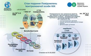 З початку 2022 року до Державної податкової служби надійшло 2 710 Повідомлень про набуття у власність, реєстрацію та продаж/ліквідацію іноземної контрольованої компанії або утворенн...