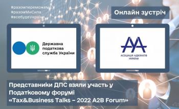 Державна податкова служба України продовжує курс на відкритість та діалог з бізнесом. Сьогодні фахівці ДПС взяли участь у засіданні Податкового форуму «Tax&Business Talks – 2022 A...