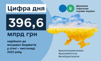 За оперативними даними надходження до місцевих бюджетів у січні – листопаді 2023 року по платежах, що контролюються ДПС, становлять 396,6 млрд гривень. Це на 46,3 млрд...