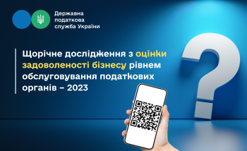 Державна податкова служба України проводить Щорічне дослідження з оцінки задоволеності бізнесу рівнем обслуговування податкових органів. Допоможіть нам ідентифікувати пробле...