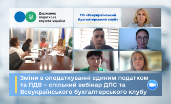 ДПС та громадська організація «Всеукраїнський бухгалтерський клуб» продовжили започатковану практику проведення спільних вебінарів з актуальних питань оподаткування для платників пода...