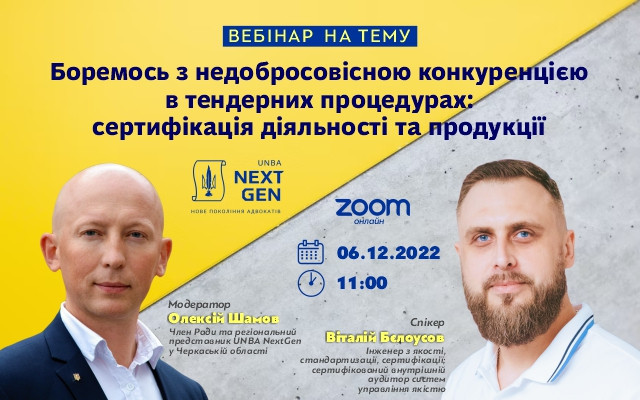 НААУ за ініціативою молодіжного комітету - UNBA NextGen організовує вебінар "Боремось з недобросовісною конкуренцією в тендерних процедурах: сертифікація діяльності та продукції"....