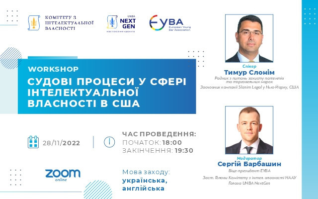 НААУ за ініціативою Комітету з інтелектуальної власності, Молодіжного комітету - UNBA NextGen спільно з Європейською асоціацією молодих адвокатів (EYBA) організовує воркшоп на тему: «Int...
