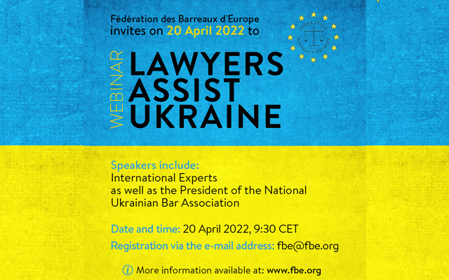 20 квітня о 10:30 Європейська федерація адвокатур проводить вебінар на тему підтримки, яку міжнародне юридичне співтовариство може надати українським біженцям, переміщеним особам, адвока...
